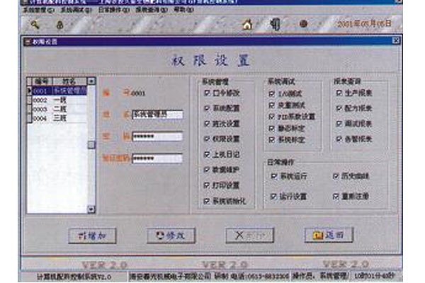 - 軟件系統(tǒng)可對系統(tǒng)管理員、操作工的操作權(quán)限進(jìn)行設(shè)置。